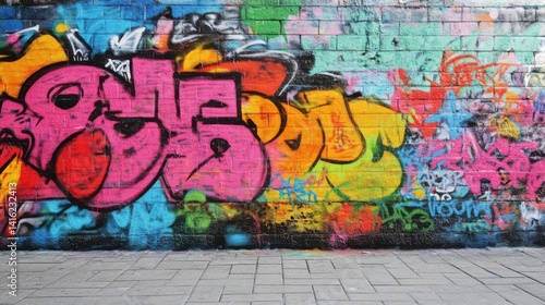 Obraz premium Graffiti mural on brick wall showcasing colorful street art