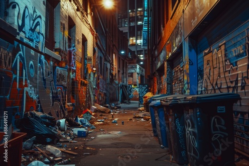 © Maxim Borbut, Fototapeta premium Graffiti on the walls of a dark alleyway in Melbourne, Australia - April 21, 2015.