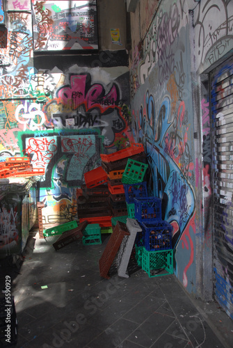 © Heng kong Chen, Obraz premium graffiti on wall and dust bin