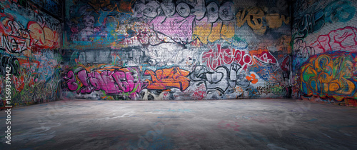 Naklejka premium Graffiti wall backdrop with colorful street art for photography