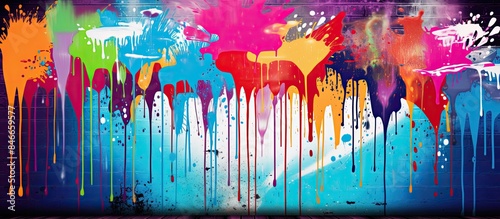 Fototapeta premium Graffiti wall background with dripping paint and copy space image.