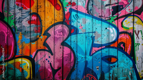 © waqar, Fototapeta premium Graffiti wall grunge background. Street graffiti on the wall background. Closeup of texture colorful graffiti wall.