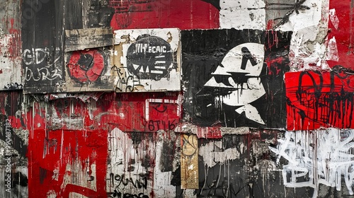 © J, Fototapeta premium Graffiti wall with bold political symbols, strong red