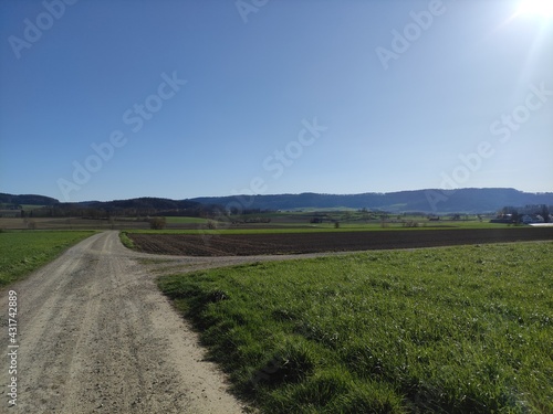 © Marc, Obraz premium Gragvel road through fields in evening light
