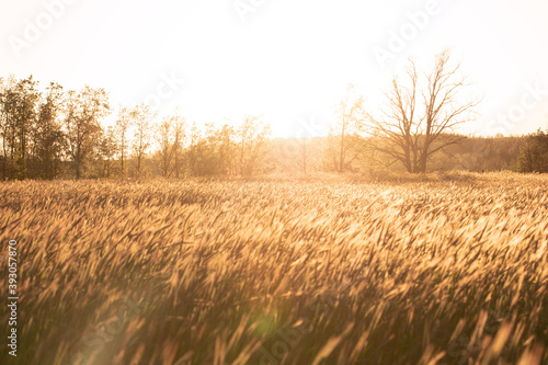 © JoseLuis, Fototapeta premium Grainfield at sunset with the sun behind it