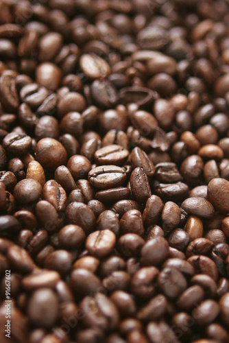 © cococinemacom, Obraz premium Grains of roasted coffee - close-up