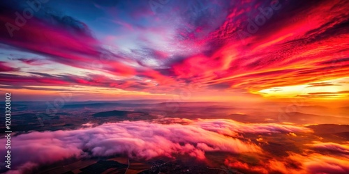Fototapeta premium Grainy, abstract pink and red aerial photography; a vibrant, textured...