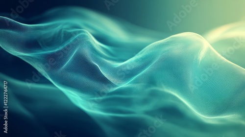 © Aisha, Obraz premium Grainy noise texture over a blue-green blur gradient, featuring abstract turquoise mesh and dynamic flow, perfect for modern visuals