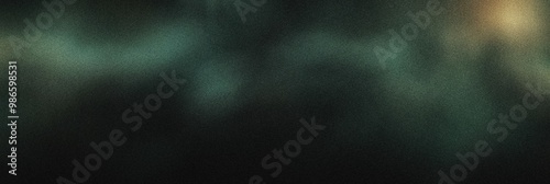 © sanntoru, Fototapeta premium Grainy noisy poster background, deep green and warm bronze color wave, black backdrop, noise texture effect