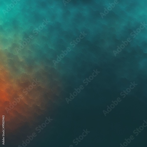 © Akmal, Fototapeta premium Grainy teal orange dark gradient wave background: Vibrant retro style noise texture banner design for abstract digital art and creative graphic projects.AI generative