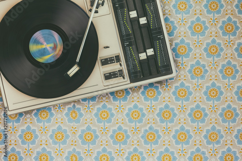 © Martin Bergsma, Obraz premium Gramofon na górze tapety kwiatowej