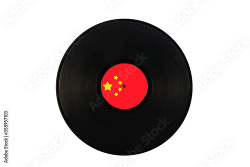 Fototapeta premium Gramophone record with the flag of China. Chinese music. Vinyl record with the flag of China, on a white background, isolated
