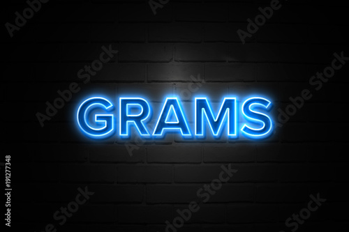 © Zobaair, Obraz premium Grams neon Sign on brickwall
