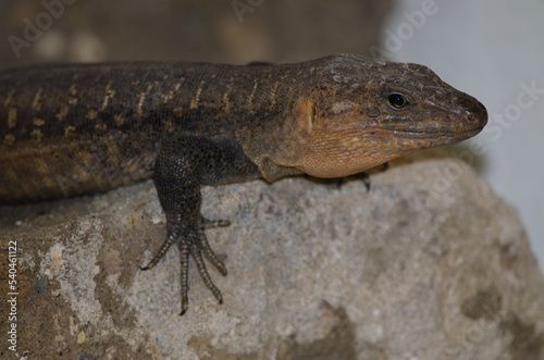 Naklejka premium Gran Canaria giant lizard Gallotia stehlini. Cruz de Pajonales. Integral Natural Reserve of Inagua. Tejeda. Gran Canaria. Canary Islands. Spain.