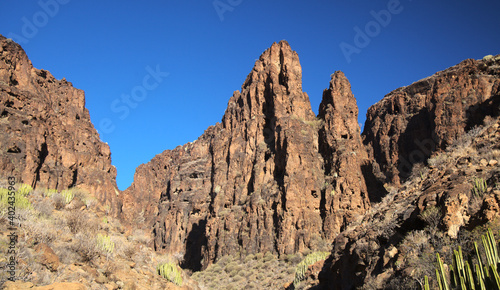 Fototapeta premium Gran Canaria, landscapes along the hiking route around the ravive Barranco...