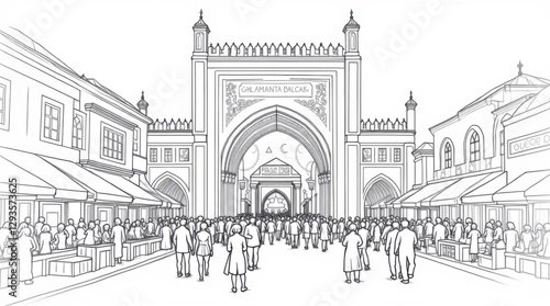 Fototapeta premium Grand Bazaar Entrance: A Line Art Illustration