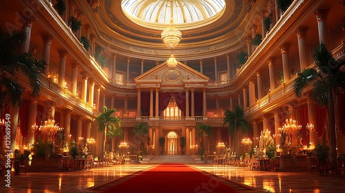 © zaryab, Obraz premium Grand Building with a Luxurious Red Carpet Entrance