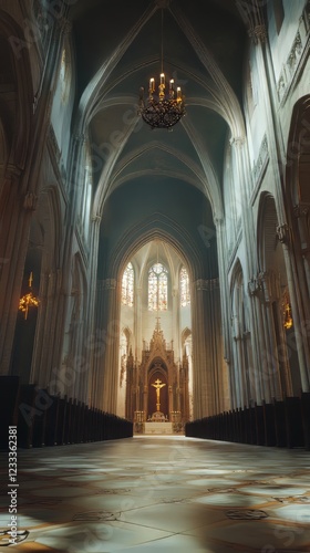 Fototapeta premium Grand cathedral interior, serene and vast.