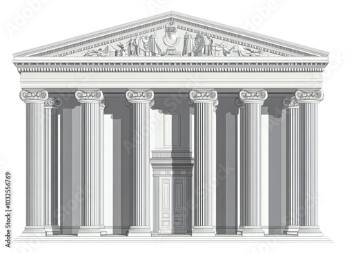 © DaKar911, Obraz premium Grand classical temple architecture isolated on transparent background