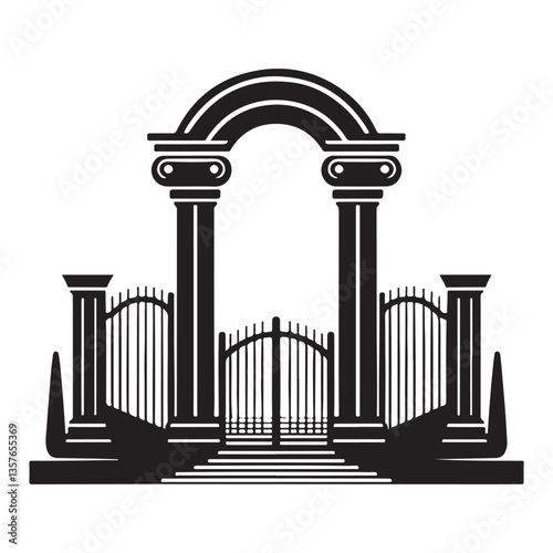 Obraz premium Grand Entrance Gate Silhouette Archway Design Architectural Illustration
