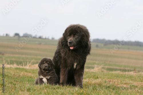 © Dogs, Fototapeta premium grand et petit dogue du tibet assis dans un champ