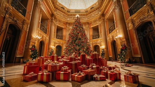 Fototapeta premium Grand Hall with High Ceiling and Christmas Decor