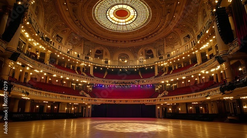 © Emi, Obraz premium Grand hall with ornate architecture and red seating