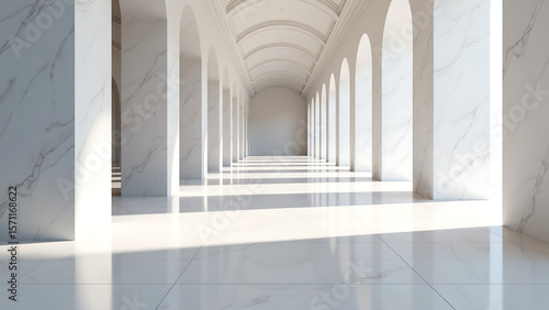 © Galeno, Obraz premium grand hallway stretches feet vaulted ceiling lined gleaming white marble floors reflect soft diffused natural light