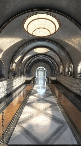© Irfanan, Fototapeta premium Grand Hallway with Arched Ceiling and Marble Floor