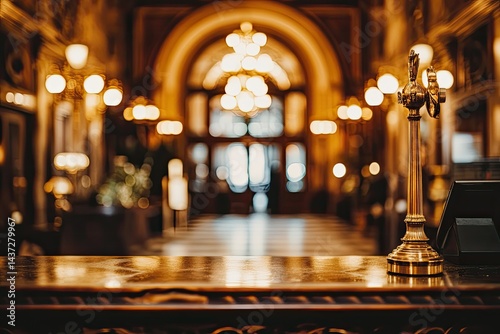 © Hasniah, Fototapeta premium Grand hotel lobby, warm light