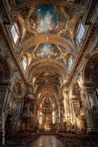 © Fitrah, Fototapeta premium Grand interior of a baroque church