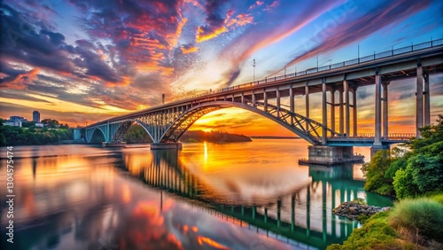 Naklejka premium Grand Island Bridge, Niagara River, New York State, Scenic Landscape, Sunrise...