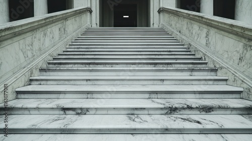 © irawan710, Obraz premium Grand marble staircase leading to a dark doorway.