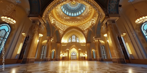 © arlisa, Obraz premium Grand Mosque Interior, Dome, Marble Floor, Golden Decor, Travel