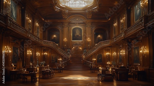 Obraz premium Grand opulent hall with sweeping staircase.