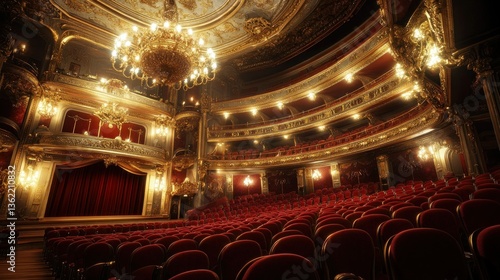 © dewi, Obraz premium Grand, ornate theater interior, opulent seating, and elaborate design