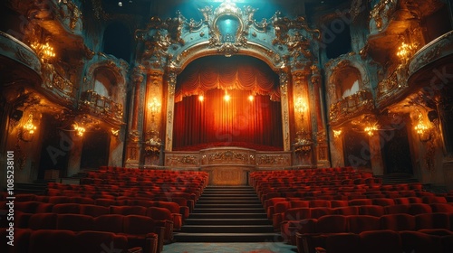 © Zaenal, Obraz premium Grand, ornate theater interior with red seats and a stage.