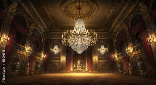 Obraz premium Grand Palace Ballroom Illustration: Luxurious Interior Design - Opulent ballroom, grand chandelier, regal decor, rich textures, sophisticated ambiance. Symbolizing wealth, elegance, power