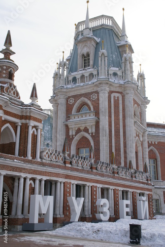 Naklejka premium Grand Palace in Tsaritsyno reserve, Moscow, Russia. The residence of Catherine the great