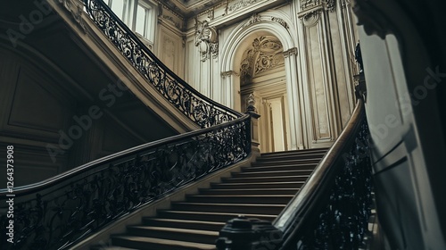 © nuyirdna, Obraz premium Grand Palace Staircase: Elegant Iron Railings and Classic Architecture