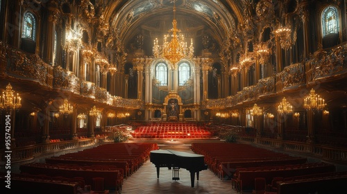 Obraz premium Grand Piano in a Golden Hall