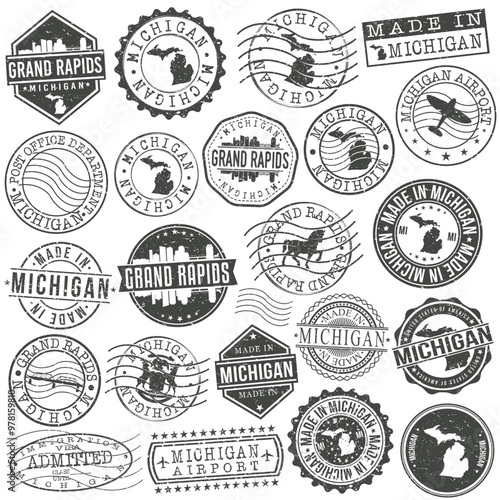 Fototapeta premium Grand Rapids, Michigan Stamp. Vector Art Postal. Passport Travel Design. Travel and Business Set.