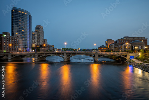 © Ayman Haykal, Fototapeta premium Grand River and Pearl Street Bridge, Grand Rapids, Michigan.