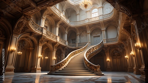 Obraz premium Grand Staircase Hall Majestic Architecture and Ornate Design Captivating...