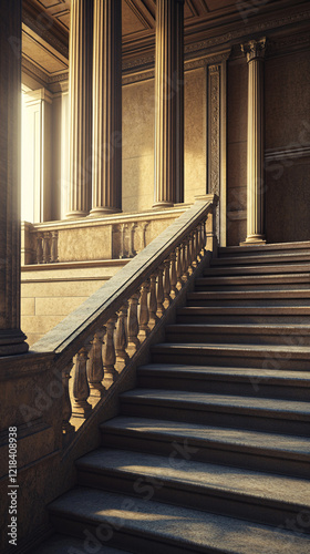 Obraz premium grand staircase with stone columns and railings in elegant classic building...