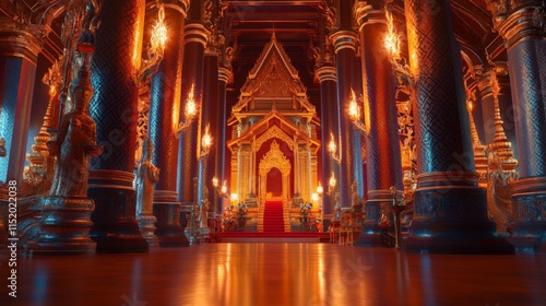 © MikhailAiman, Obraz premium Grand Temple Interior with Serene Ambiance