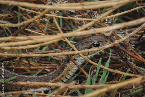 © JoseAntonio, Fototapeta premium Grand Teton National Park garter snake chilling on a rock