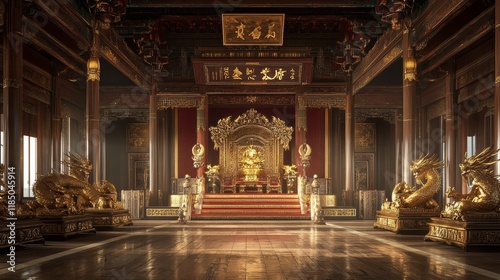 Fototapeta premium Grand throne room featuring intricate decorations and golden accents in a...