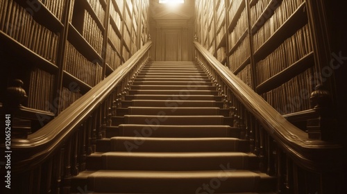 © Sleeping Carbuncle, Fototapeta premium Grand Wooden Staircase in Historic Library Setting