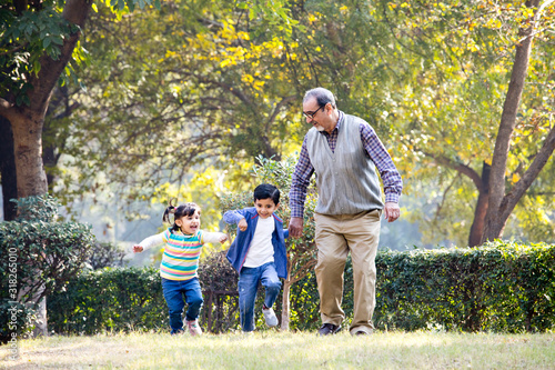 Fototapeta premium Grandfather playing with grandchildren at park